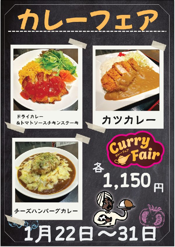 投稿日: 2026年1月25日 投稿者: 川中島温泉広報担当[食事処]カレーフェア開催(~1月31日) 期間限定メニューが3品! ・カツカレー ・ドライカレー&トマトソースチキンステーキ ・チーズハンバーグ この機会にぜひお召し上がりください。